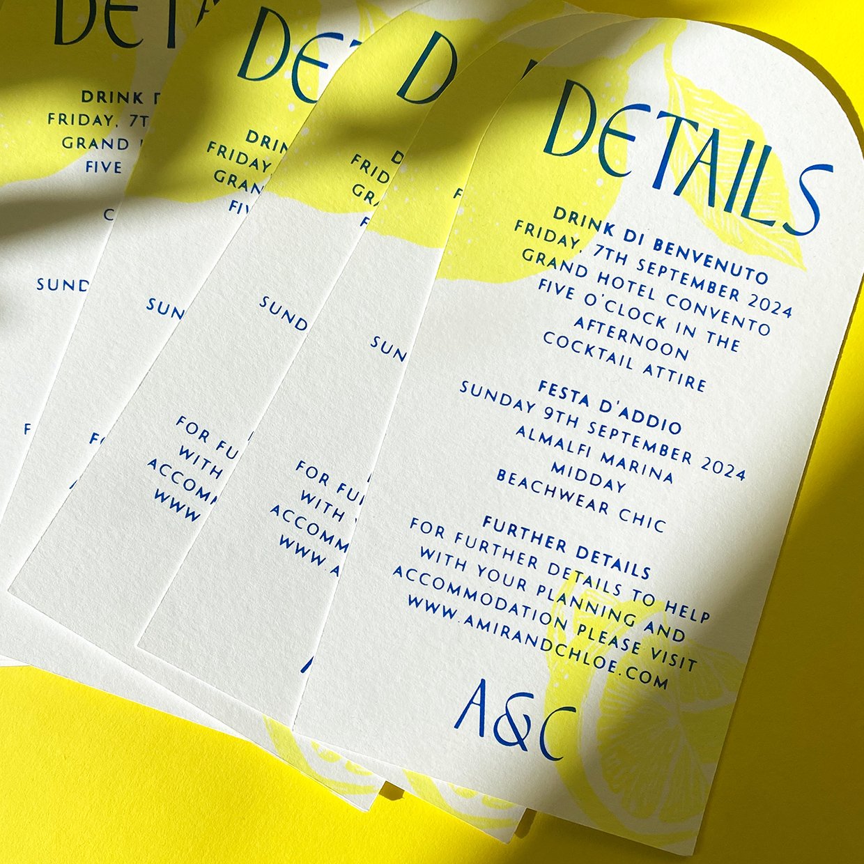 Next we’ll get busy creating your bespoke illustrations, chosen colour pallet and any other special touches discussed. We’ll finish with your first design mock-up, a PDF detailing all the elements of your wedding suite.