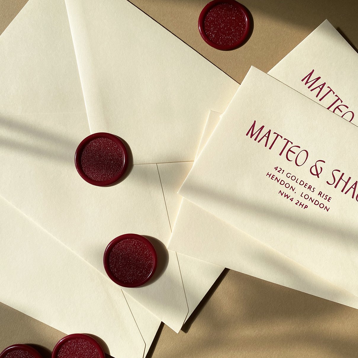 Wax seals, R.S.V.P envelope addressing and envelope liners for that little something extra