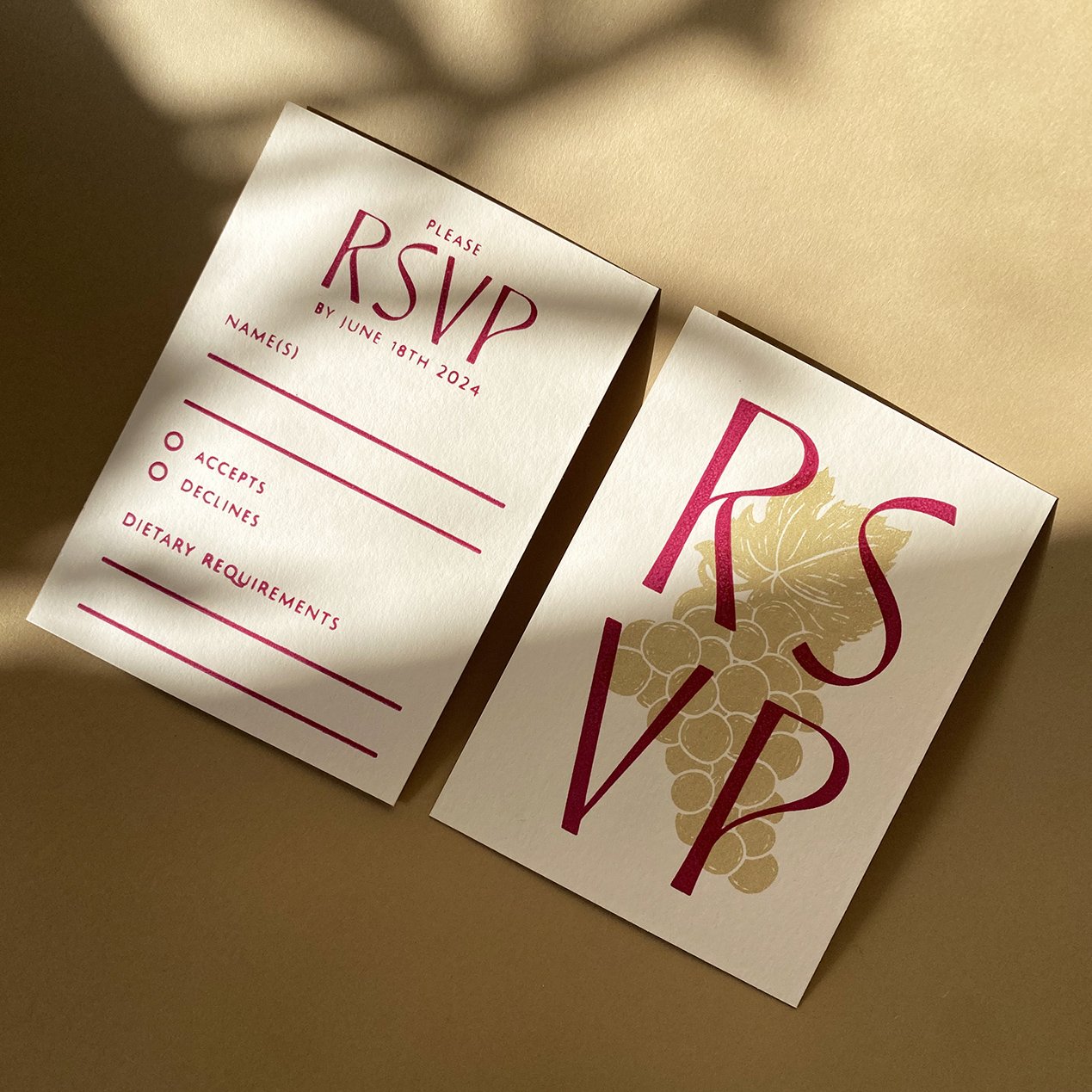 Includes: Invitation, Details card, R.S.V.P and all envelopes.