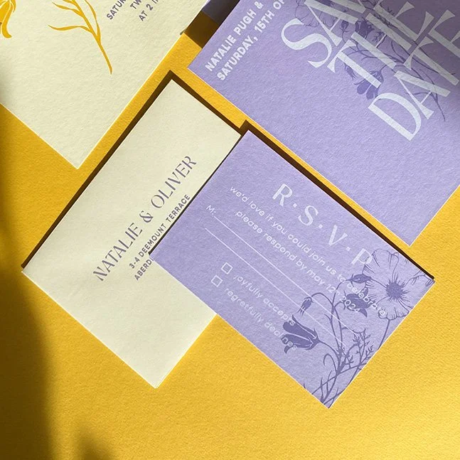 This collection features custom illustrations of two flowers with significance to the couple.
