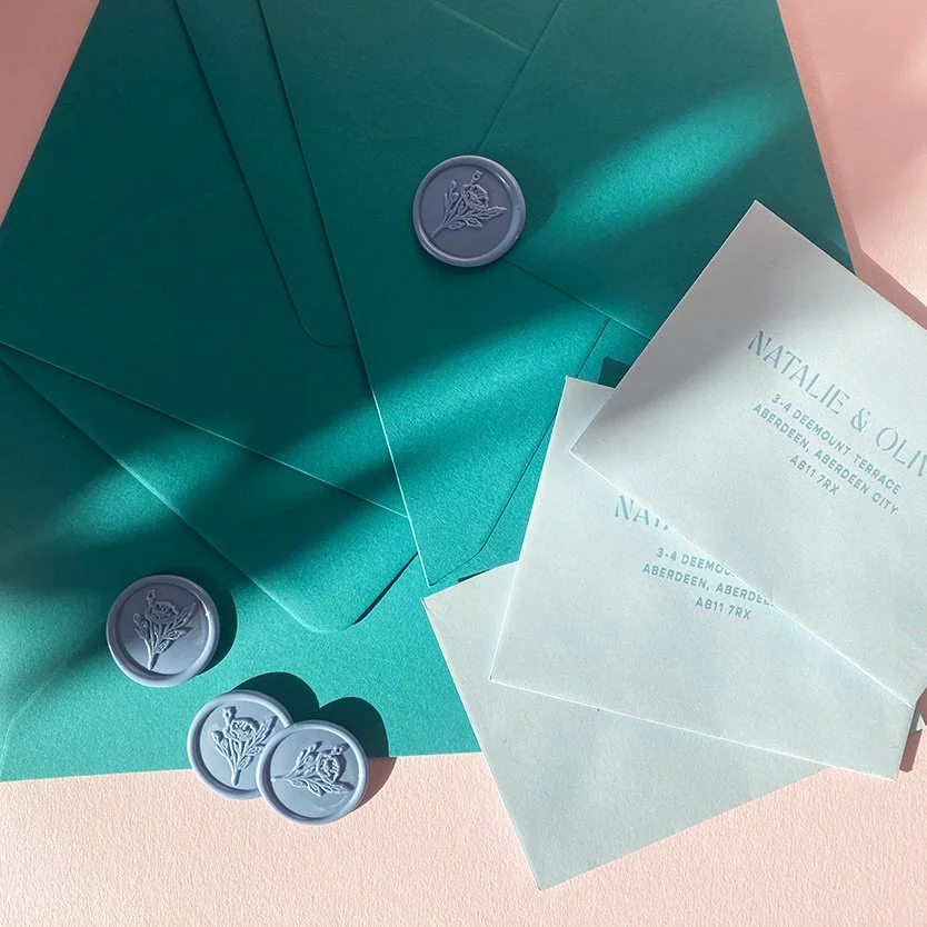 Wax seals, R.S.V.P envelope addressing and envelope liners for that little something extra